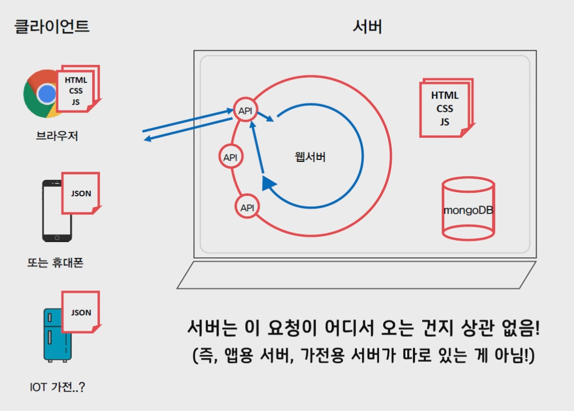 API(Application Programming Interface): 서버에서 미리 만들어둔 기능이자, 클라이언트 개발자하고 서버개발자가 미리 한 약속 -> 그래야 클라이언트는 클라이언트 대로 개발을 해 나가고, 서버개발자는 서버개발자 대로 개발을 해 내가기 때문.