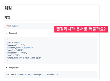 API 명세서 : API에 관한 정보를 문서로 적어둔 것.