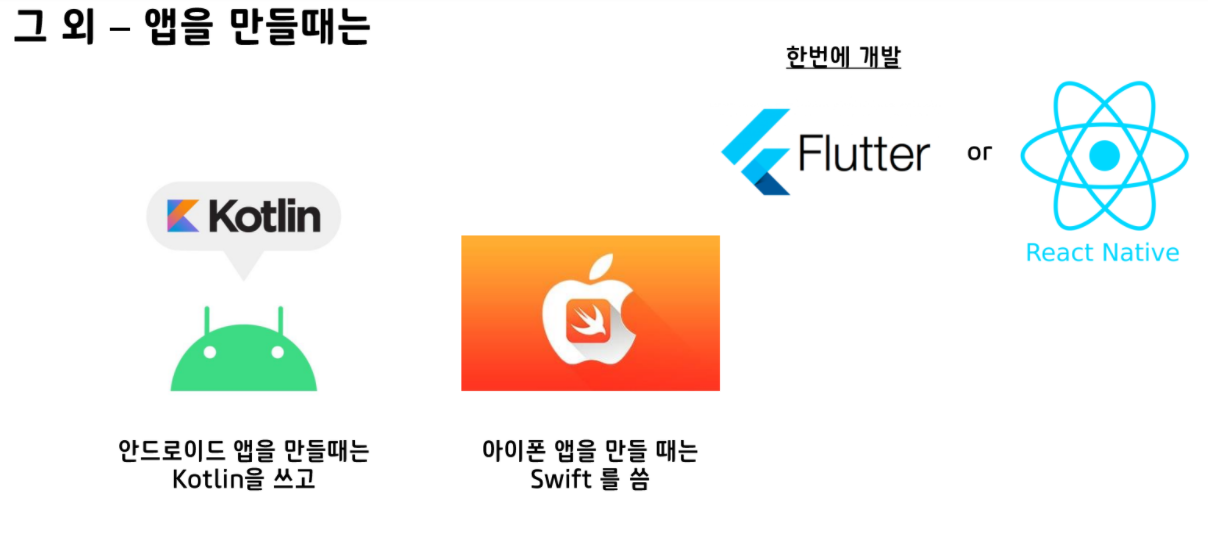 프론트앤드의 프레임워크: 체감상 리액트가 대세 그런데 셋중 하나 할 줄알면 금방 아래 세 프레임워크는 배울수 있다.