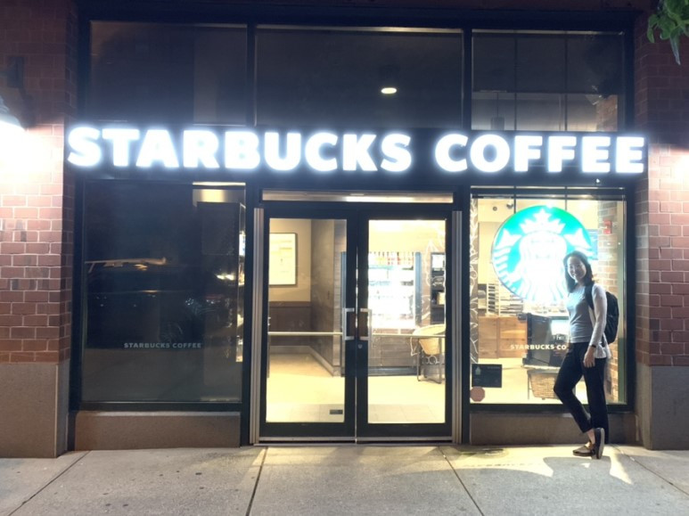 남편은 오픈 시간에 맞추어 나를 데리고 스타벅스로 갔다. 새벽 5시가 이곳의 영업 시작을 알리는 시간이었기 때문이다. 잠시 문이 열리기까지 밖에서 기념사진을 찍었다. 앞으로 매일 이곳에서 아침을 접수하리라 하며 말이다. 5시 정확히 문이 열렸고, 내 사랑 라떼와 크림치즈 잔뜩 바른 베이글 토스트로 세상 다 가진 기분을 맛보았다.
