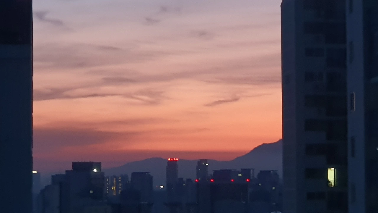 현관문을 닫고 보니 저 멀리 아파트 사이로 보이는 '일출'이 제법 예뻐서 사진을 찍었다. 은은한 다홍빛. 일출은 참 예쁘고 나는 참 피곤하다. 이런 저질 체력은 운동에 적응하는 데 시간이 훨씬 많이 걸리는가 보다.