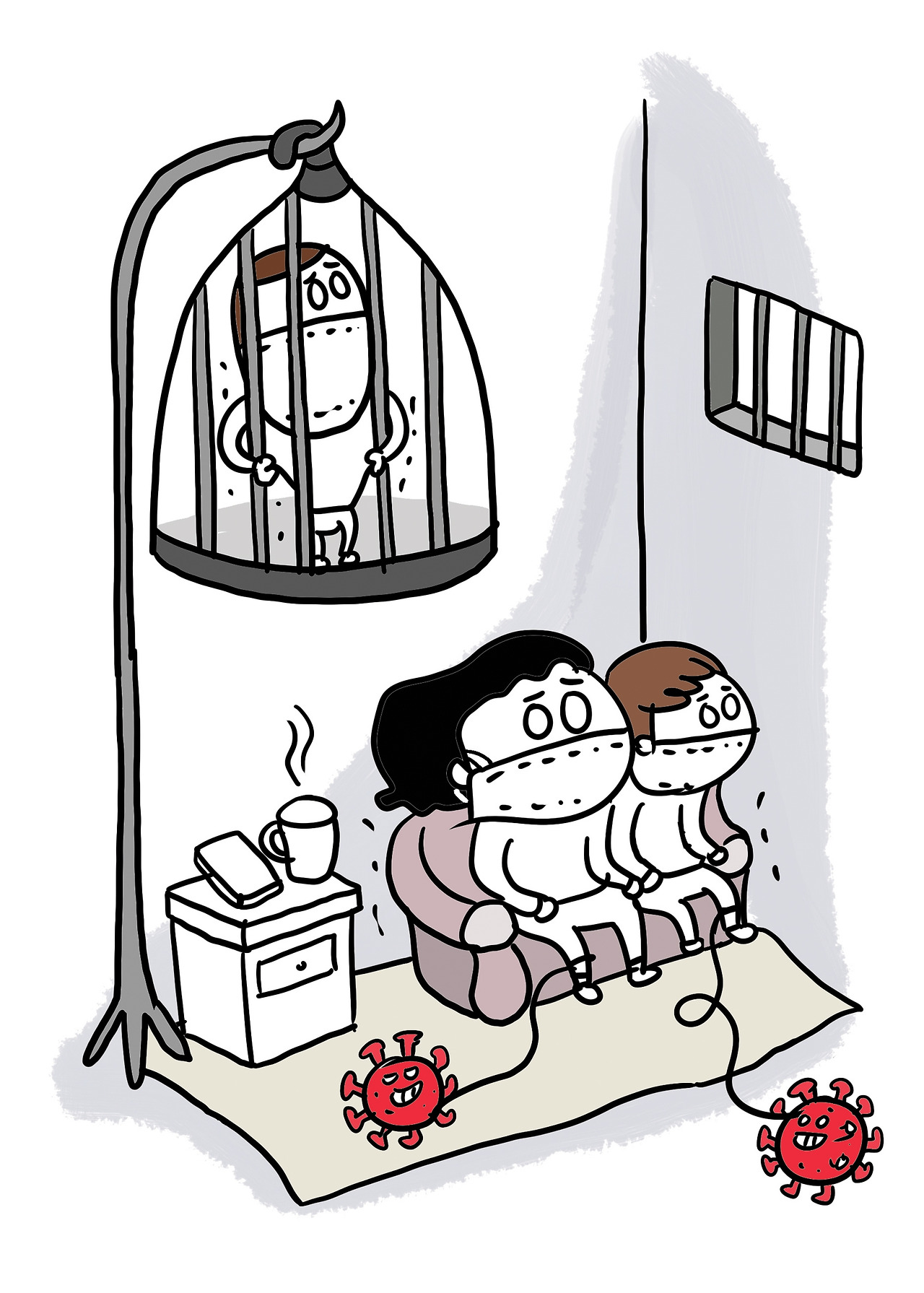 우선 남편을 작은방에 격리하고