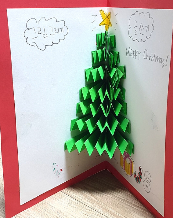 초등학생 1~2학년 아이들과 만든 크리스마스트리 입체 카드.