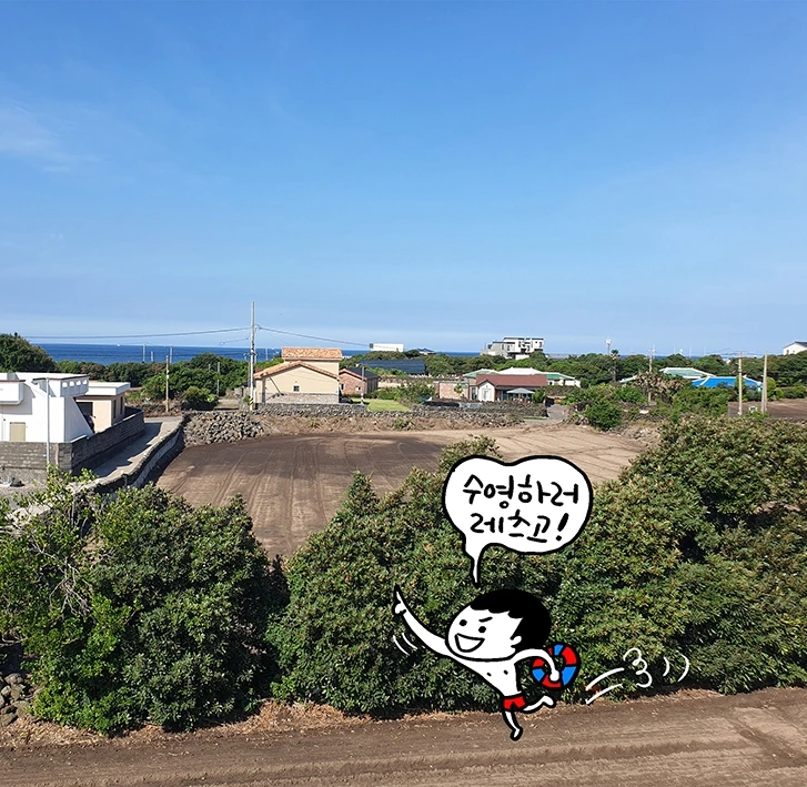 < 우리가 묵었던 평대 바다 근처의 독채 펜션>