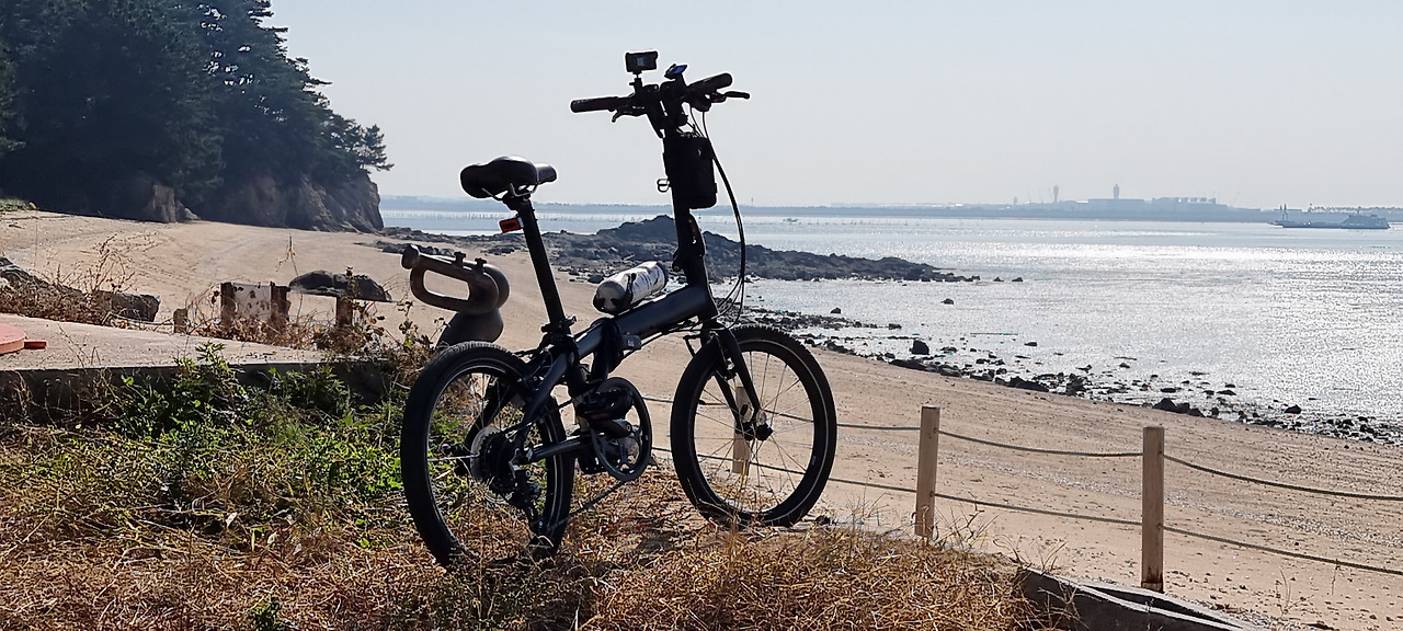 다행히 그다음 주는 무사히 입도할 수 있었다. 그리고 기대한 대로 삼 형제 섬 라이딩은 힐링의 끝판왕이었다. 자전거 전용 길은 전혀 없지만 시골마을 평범한 동네길과 차가 거의 없는 아스팔트 길을 번갈아 달리면서 숨은 관광지 찾기 놀이를 하는 즐거움이 있었다. 신도의 구봉산을 살짝 돌아 오르막길에 내리막길을 더하고 빼면 신도에서 시도로 넘어가는 다리가 나오고 여기서 한 참을 달려 표지판은 수기해변으로 되어 있지만 도무지 해변이 없을 것 같은 마을을 지나 뒷산을 다시 오르락내리락하면 시야에 펜션이 확 들어오고 이내 시선을 오른쪽으로 살짝 돌리면 아주 넓은 모래사장 해변이 나온다. 아... 서해 섬에 모래사장 해수욕장이었다.