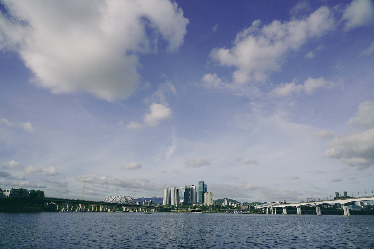 비가 그치고 오후 3시 정도였나. 사무실 커튼 사이로 빛이 스며들기 시작해서. 비가 그쳤을까 창밖을 바라보니 비온 뒤 하늘이 맑게 개어있었다. 아주 오랜만의 깨끗한 하늘. 가장 가까운 한강은 당산역부근이라. 짐을 챙겨서 당산역으로 나선다.