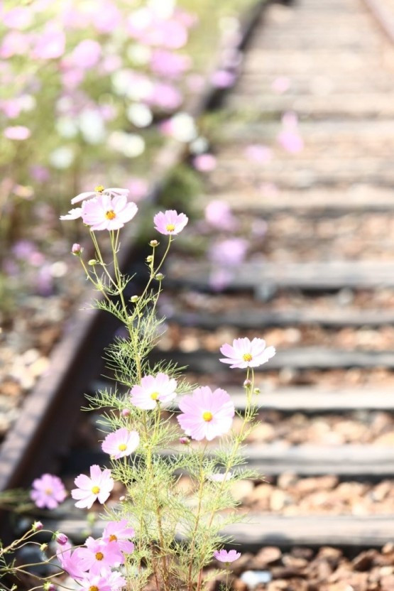 기찻길 코스모스 헤어짐이 너무 아쉬워