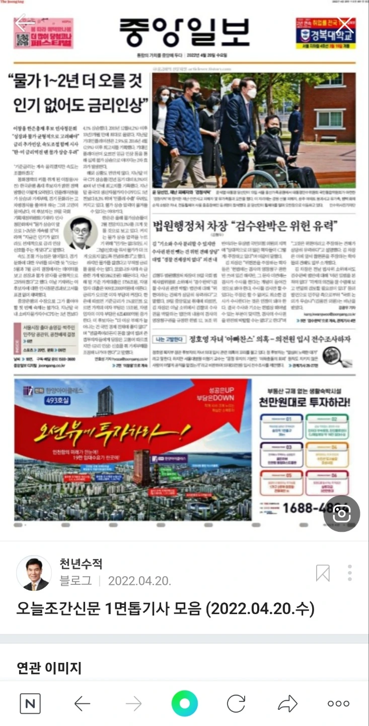 오늘조간신문 1면 톱기사 모음 (2022.04.30.토)