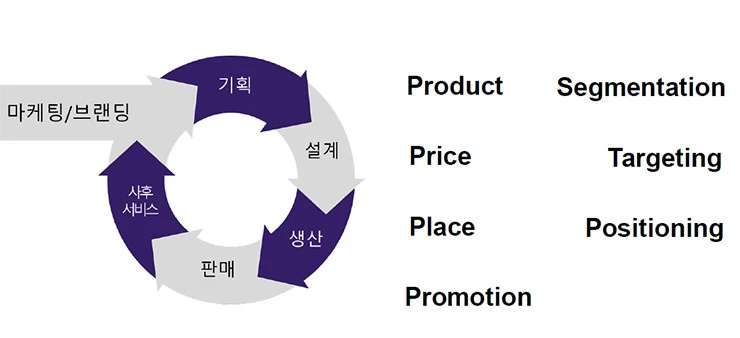 전체 그림 중에서 마케팅의 핵심 전략은 크게 2가지로 구성된다. 해당 제품을 갖고 우선적으