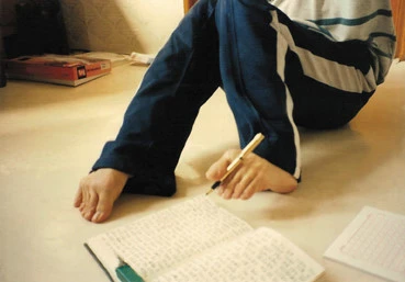 이렇게 발로 기타를 치기 위해서 얼마나 많은 훈련을 했을까? 생각하니 눈물이 난다 또한 변칙 튜닝을 해야 하는 많은 어려움이 있는데 극복하신 모습에 박수를 보냅니다