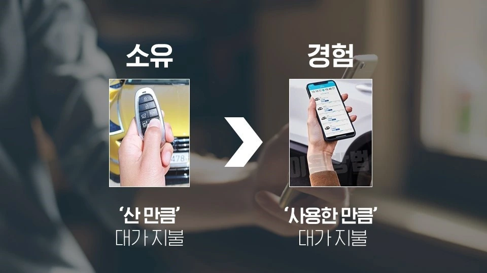 ‘공유경제’와 ‘구독경제’는 ‘소유를 넘어 경험’을 중시한다는 공통된 의미가 있다. 과거에는 소유하는 것이 꿈이었다. 집을, 자동차를 소유하기 위해 우리는 열심히 노동했고 그것들을 구매했다. 그러나 현 MZ세대에게는 소유 자체의 의미보다 경험이 더 중시되고 있으며 내가 필요로 하는 서비스/제품을 내가 원하는 시간이나 상황에 맞춰 사용하고 경험하는 것을 추구한다. ‘산 만큼’ 대가를 지불하는 것보다 ‘사용한 만큼’ 대가를 지불하고 싶어 하는 현명한 변화이자 소비자가 더 스마트해졌음을 보여주는 현상이다. 그렇다고 MZ세대가 실용적인 경험만을 추구한다고 오해해서는 안 된다. 오히려 2030세대의 명품소비가 증가하고 있는 것만 보더라도 자기가 소유하고 싶거나 가치 있게 생각하는 서비스나 제품에는 과감하게 투자하지만, 그 외에 대부분 재화에는 경험 정도로 합리적 소비를 추구하는 것으로 이해해야 한다.