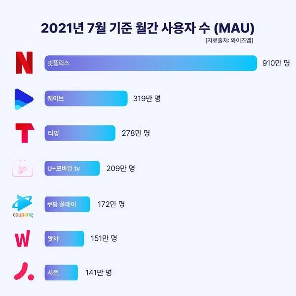 콘텐츠형 구독 모델은 진입장벽이 낮아 경쟁이 치열하다는 점이 특징입니다. 실제로 넷플릭스 성공에 힘입어 티빙, 왓챠, 웨이브, 쿠팡플레이, 시즌 등 다양한 브랜드가 OTT 플랫폼 시장에 후발 주자로 등장, 국내 소비자들에게 다양한 선택권을 제공하고 있습니다.