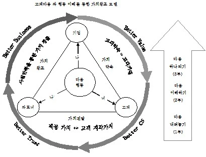 기업의 순이익 개념과 비슷하다고 할까? 기업의 순이익 = 매출액 - 총비용. 고객가치 역시 고객 입장에서 어떤 상품을 통해 얻는 총 혜택(효용)에서 지출되는 유무형의 제반 비용을 뺀 나머지 부분이라고 보면 된다.