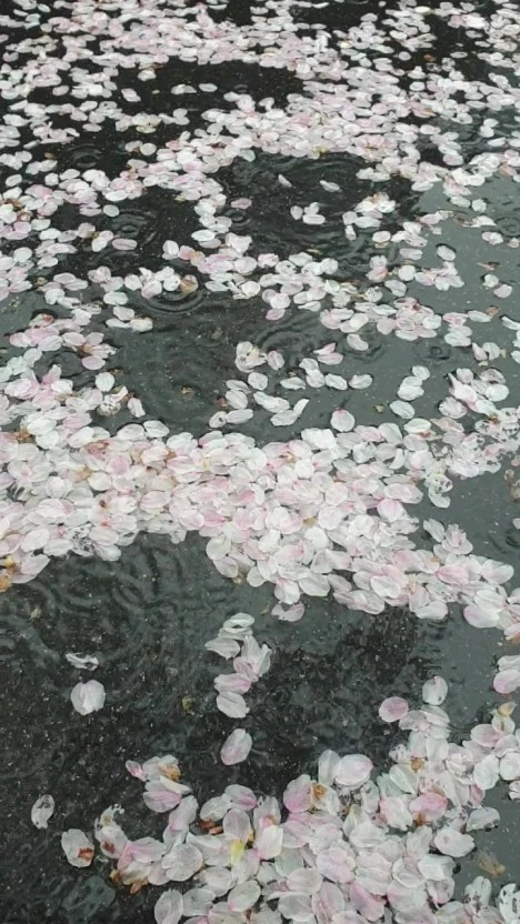우주의 먼지처럼 고요히 떨어지는 비꽃잎.