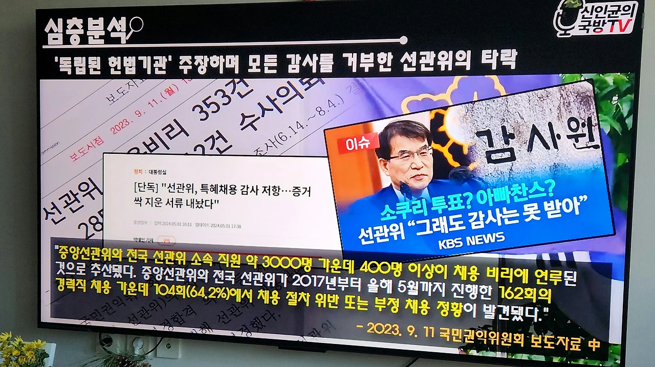 국민권익위원회가 발표한 자료에 따르면, 선관위와 전국 선관위 소속 직원 약 400명이 채용 비리에 연루된 것으로 드러났다. 특히, 2017년부터 2023년까지 진행된 채용 절차의 64%가 규정을 위반한 것으로 밝혀졌다. 이는 선관위가 권력에 종속되어 조직적 사유화를 통해 민주주의를 지키기보다는 특정 집단의 이익을 추구하고 있음을 보여준다.
