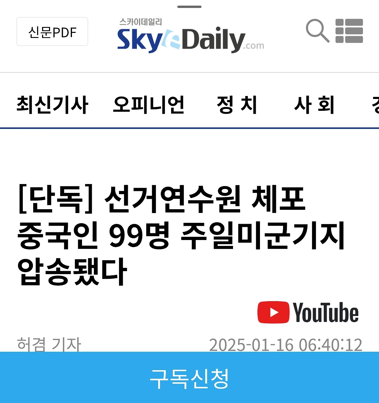 "스카이데일리보도 99명, 부정선거 중국해커 미국이송 조사"
