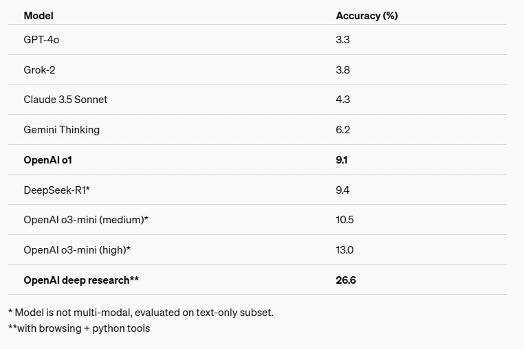 딥 리서치는 공개 직후 인공지능 성능을 평가하는 **‘인류의 마지막 시험(Humanity’s Last Exam, HLE)’**에서 26.6%의 정답률을 기록하며 새로운 AI 연구의 이정표를 세웠다.