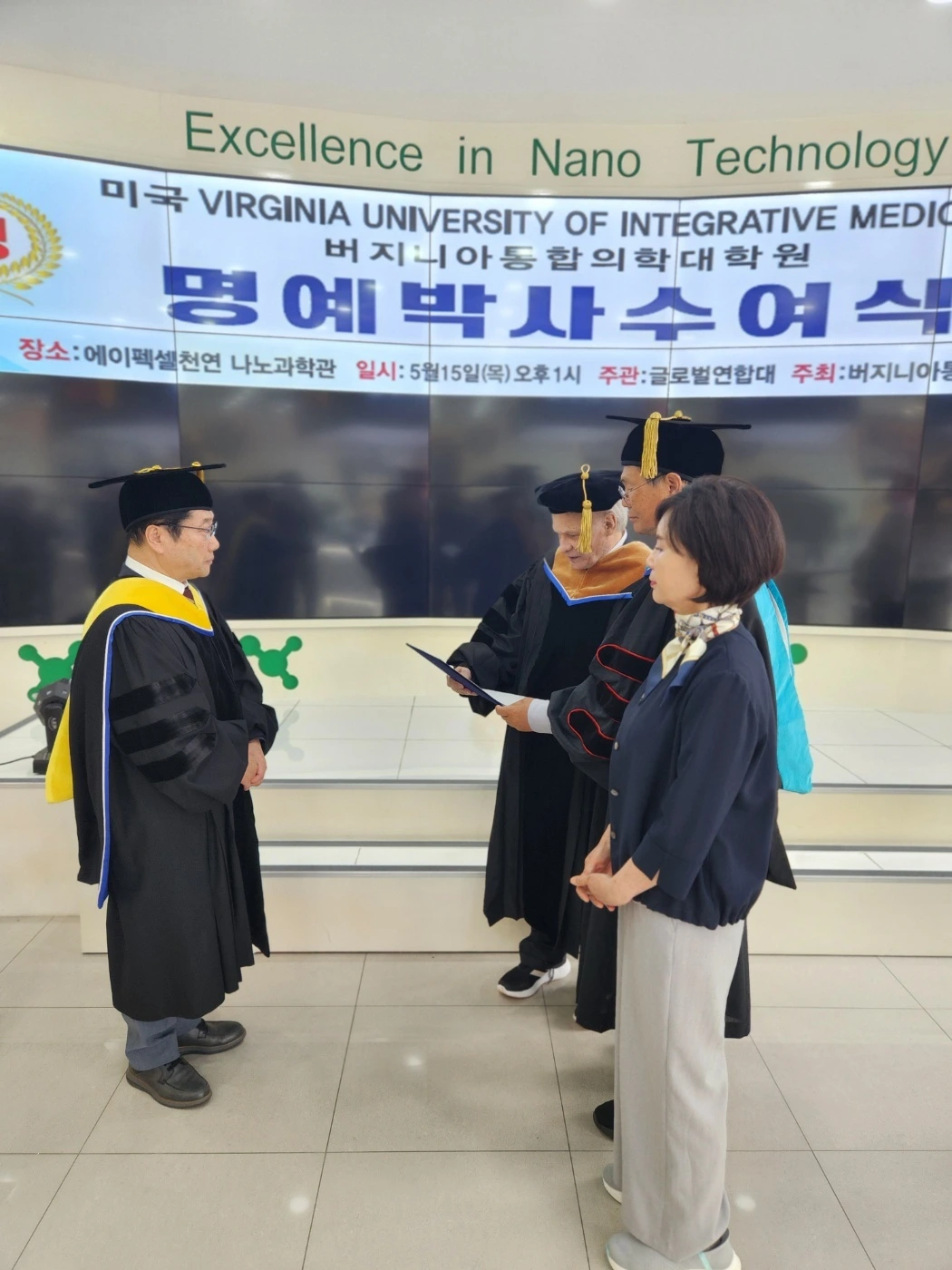 행사의 하이라이트는 에이펙셀천연나노과학관의 강대일 박사에게 미국 버지니아대학교 명예박사 학위가 수여되고, 이현우 교수에게 미국 버지니아대학교 의료전문대학원의 객원교수 임명장이 전달된 순간이었다. 정창덕 총장과 제인 김 이사장이 직접 수여자로 나섰으며, 이 뜻깊은 자리에 각계 각층의 전문가 및 관계자들이 참석하여 축하와 격려를 아끼지 않았다.