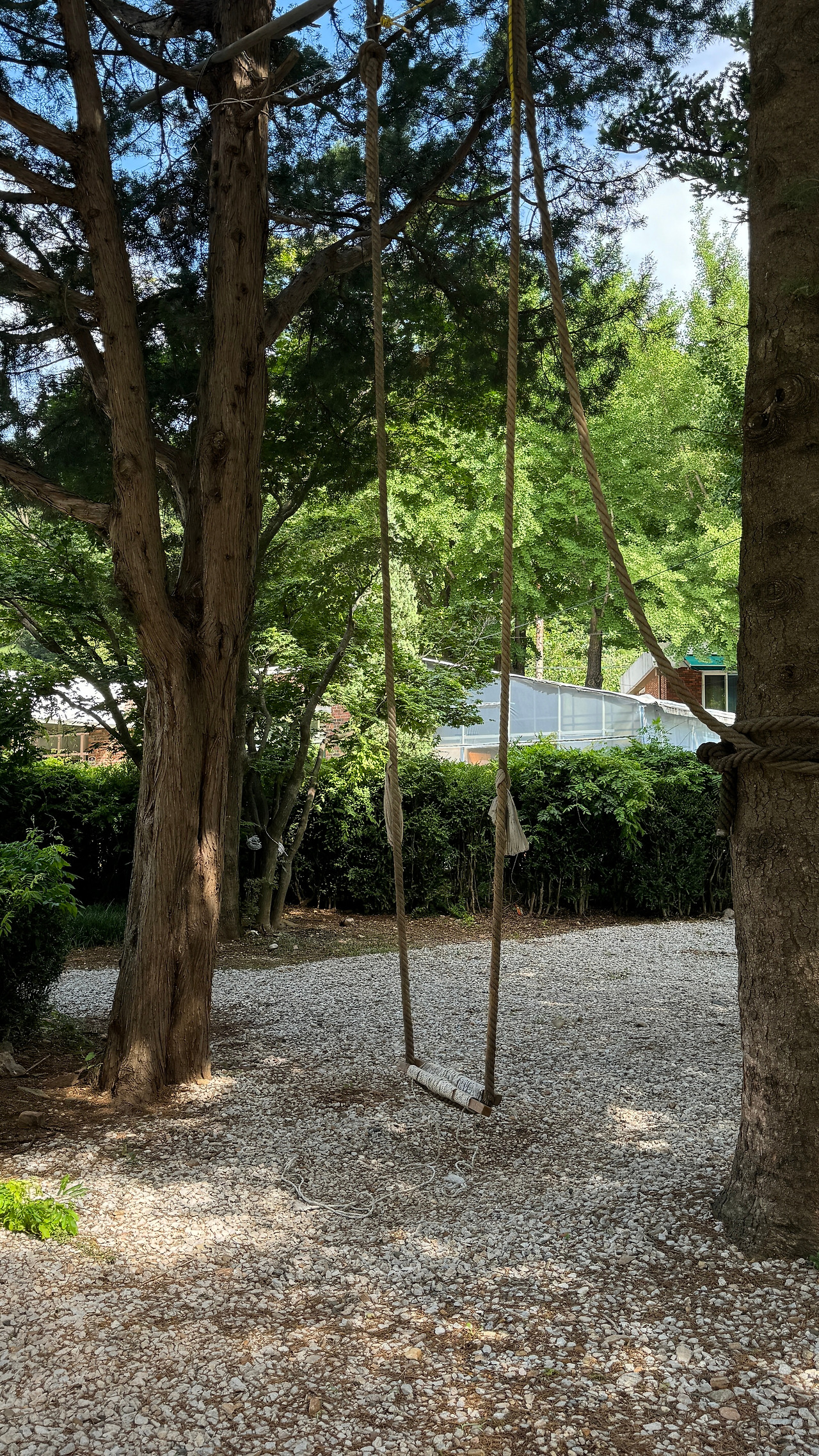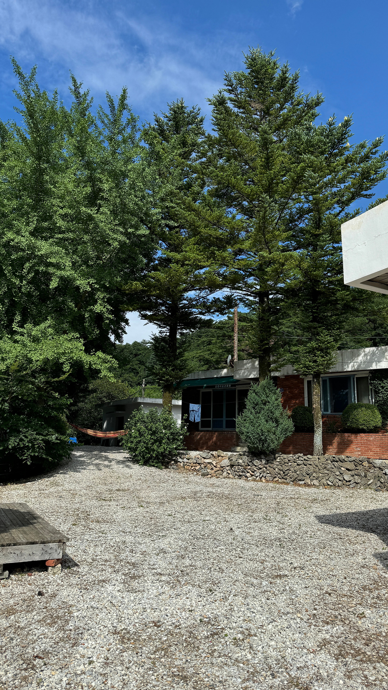 친구가 예약했다고 보낸 에어비앤비 링크를 보고 처음엔 못마땅했던 숙소는 직접 가보니 깔끔하고 정겨웠다. 폐교 관사를 재활용한 숙소라 책이 가득했다. 폐교 복도를 걷는 것도 좋았다.