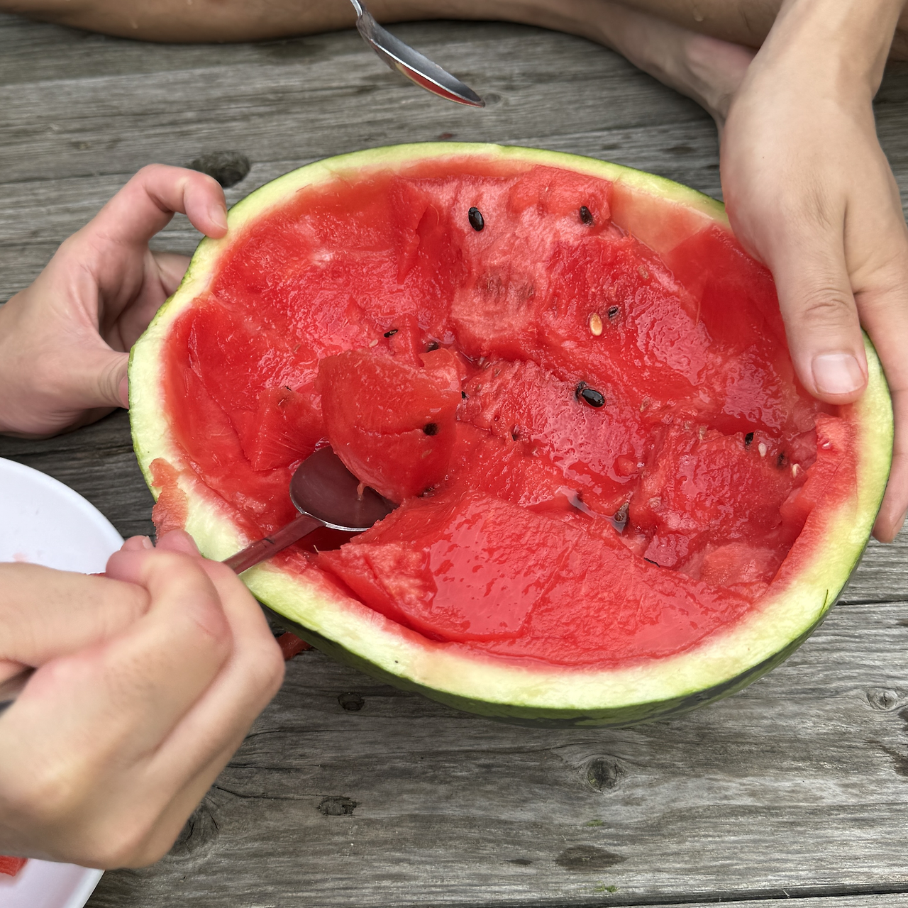밤의 계곡을 산책하고 밤하늘에 가득한 별을 보았다. 다음 날은 바다에 가서 스노클링 하고 맥주를 마셨다. 친구가 직접 딴 문어와 해삼과 멍게를 갖고 와 평상에 앉아 시원한 물회와 함께 먹었다. 폐교 운동장에서 팀을 나눠 투바운드 농구 게임을 하고 축구공으로 족구를 했다. 땀을 뻘뻘 흘린 다음 계곡에 들어갔다. 미지근한 수박을 차가운 계곡물에 담근 다음 함께 달려들어 숟가락으로 퍼 먹었다. 수박을 먹는데 갑자기 소독차가 소독 연기를 뿜으며 지나가 다 같이 잠깐 콜록거렸다. 아직도 소독차가 있느냐며.