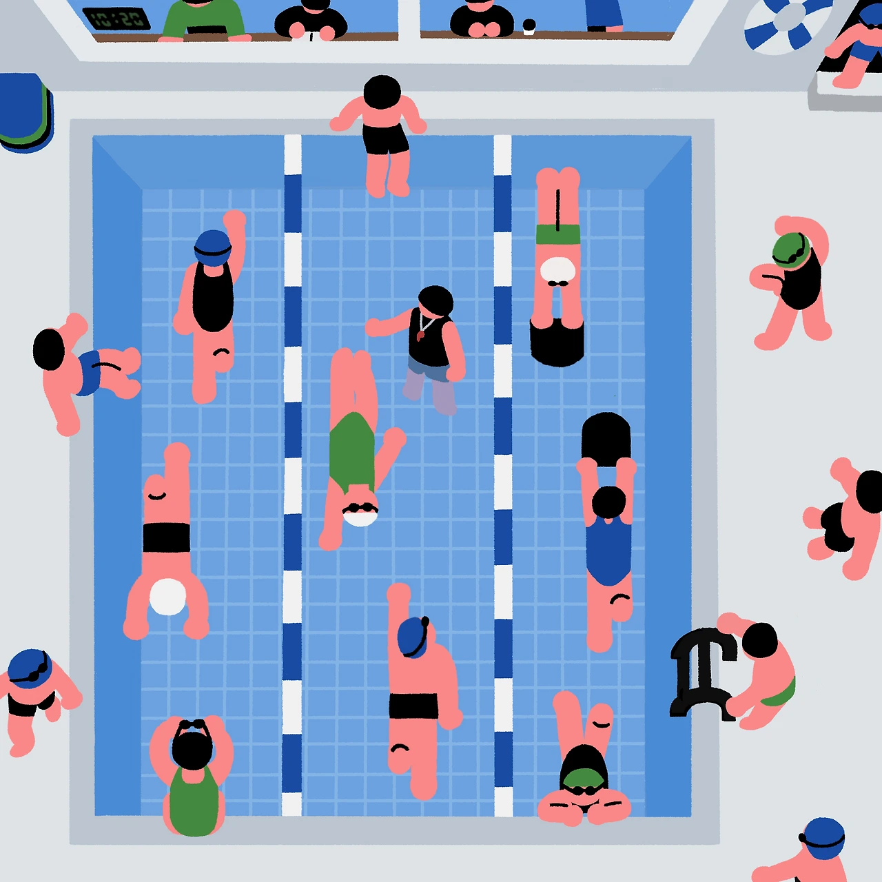 그러다 얼마 전 수영을 다시 배우기 시작했다. 살다 보니 수영을 배워야 될 이유가 자꾸만 생겼다. 아이들이 좀 크니 물놀이도 데려가고 싶고 혹시나 모를 상황에 생존용으로라도 익혀둘 필요가 있었다. 그리고 나의 유일한 유산소운동인 걷기를 무릎 통증 때문에 줄여야 하는데 수영이 딱이지 뭔가. 그 외에 여러 에세이에서 수영예찬론자들의 이야기를 본 것도 영향이 있었다(그들도 하나같이 운동신경이 형편없었다는 말에 자극이 됐다.). 무엇보다 나이 들고 애 낳고 보니 놀라우리만치 창피함이 없는 씩씩한? 아줌마가 되었지만(아줌마 비하 아님), 그럼에도 여전히 일 못하는 스스로를 견디기 힘들어하는 나를 위해 못하는 일도 개의치 않고 즐겁게 해내는 연습을 해보고 싶었다.
