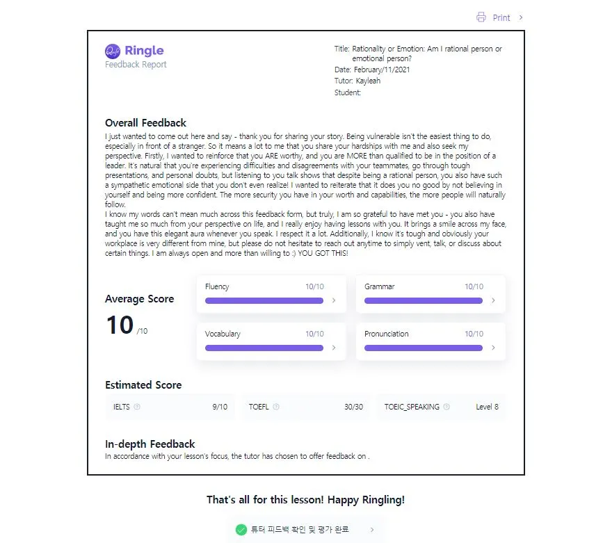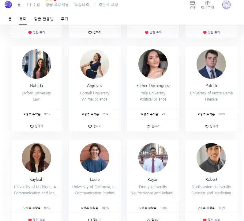 하버드 대학 Abigail & 에모리 대학 Rayan 전반적인 링글의 선생님들이 단순히 똑똑하다 공부를 잘한다에서 끝나는 것이 아니라, 학생의 이야기를 듣고, 공감하고, 새로운 정보에 대한 이해를 도와주며, 나의 영어에 대한 교정까지 해주는 능력이 매우 seamless 하다고 생각해요.