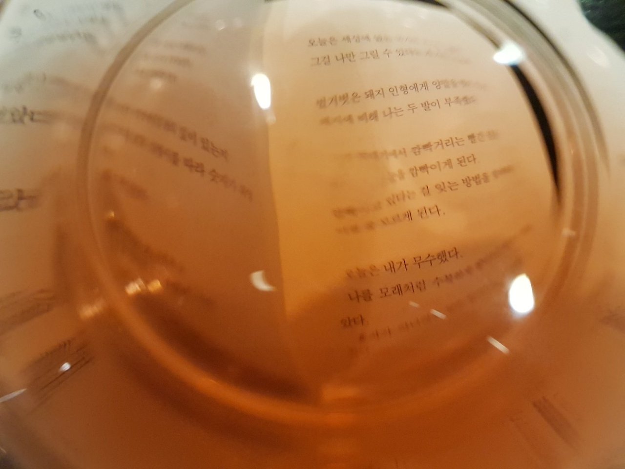 컵의 색, 그리고 그것에 담긴 액체의 색깔, 컵의 굴절, 컵의 흔들림, 그것의 시선으로 걸러낸, 이 모든 것은 시선을 호도한다.