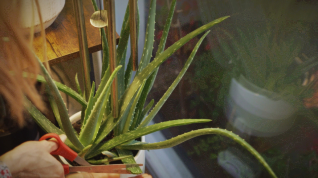 키우는 알로에베라를 살짝 잘라내어 세수 전 얼굴에 발라주고 있어요.