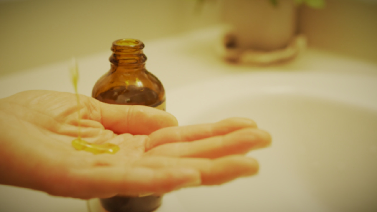 이제 코코넛 오일을 머리카락 끝부분에 살짝 발라준 뒤 드라이로 마무리해주려 해요.