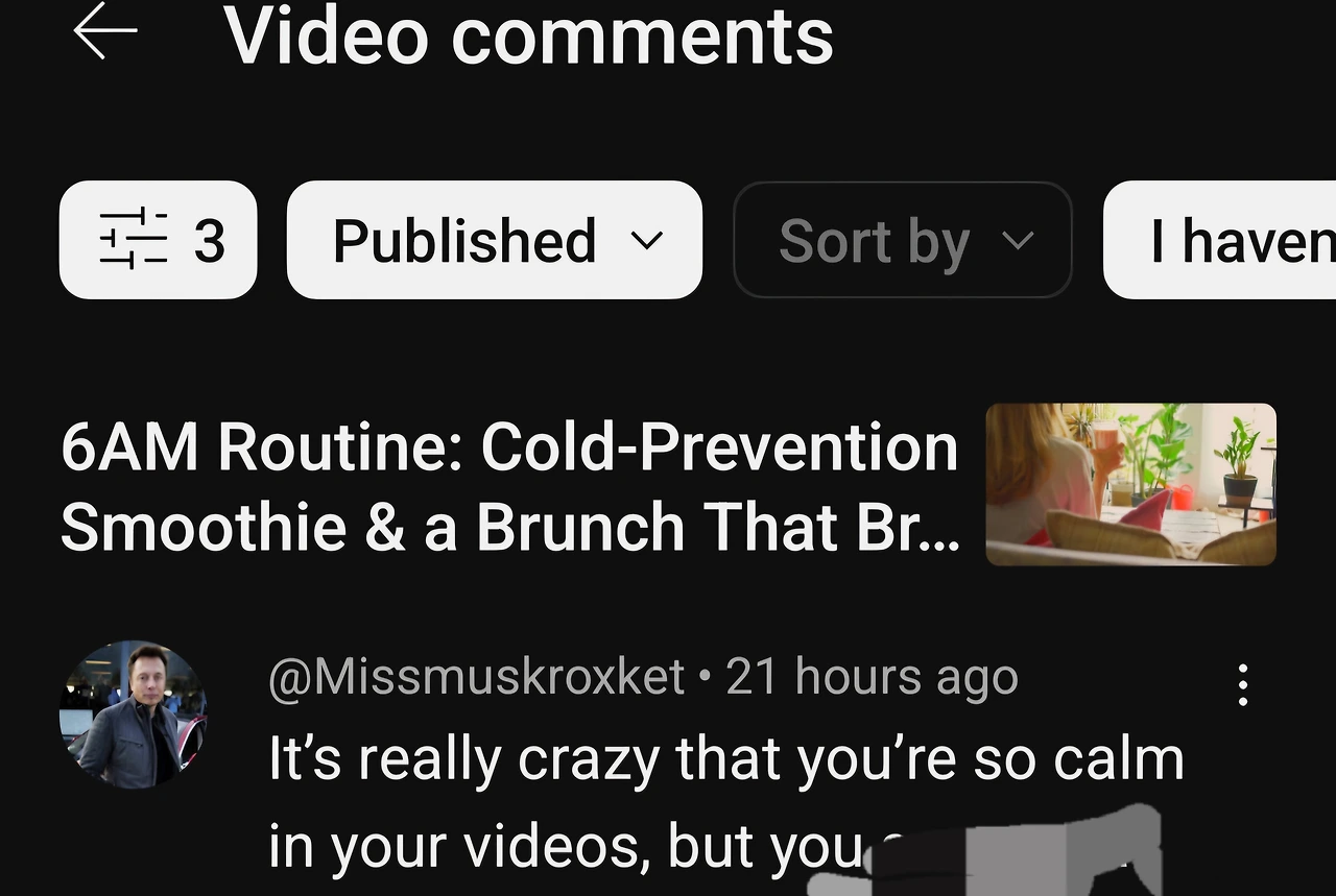 제 채널은 아직 작기에 누가 어떤 경로로 들어와 어떤 영상을 봤는지를 어느 정도 파악할 수 있습니다. 그녀는 외부 채널을 통해 제 영상 두 개에 ‘싫어요’를 누르고, 그중 하나에 댓글을 남겼습니다.