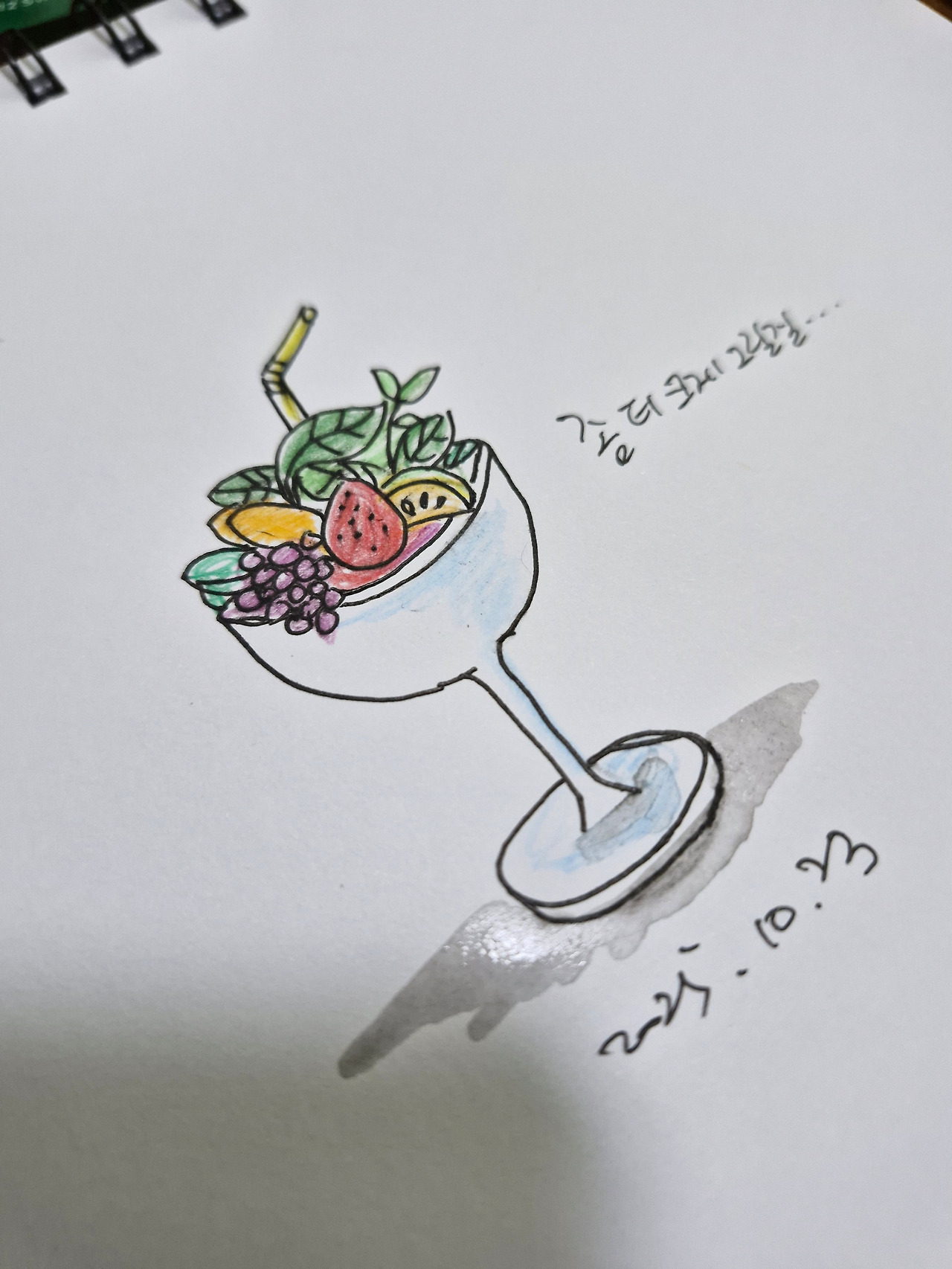 커피 잔을 그리며 첫 붓질을 한 이후 한동안 붓을 들지 못했다.