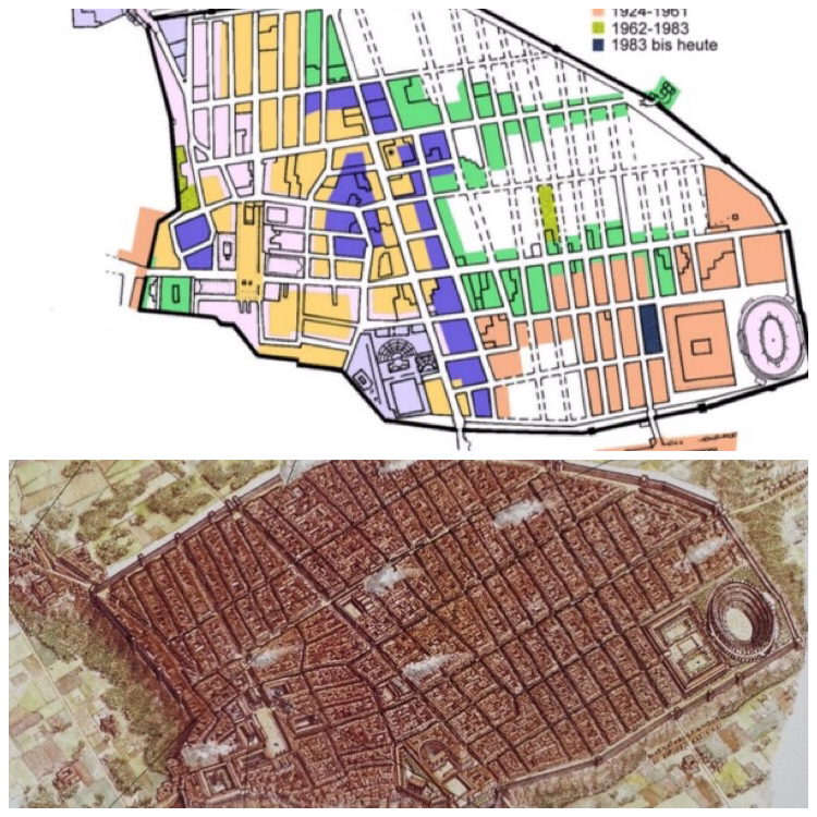 첫 장소는 폼페이다. 이곳은 기원전 6-7세기에 건설된 계획도시이다. 기원전 79년 베수비오 화산 폭발로 도시 전체가 묻힌다. 아니 기원전에 무슨 계획도시? 물고기 모양으로 구획하고 개발된 곳이다. 도로나 정비된 구역뿐 아니라 물고기 모양이라니. 멋지지? 기원전에 말이다.
