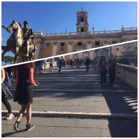 이 언덕과 광장은 미켈란젤로가 설계했다. 아래서 보면 오르기 만만하다. 천재답게 착시효과를 준다. 직선이 아닌 사다리꼴인 거다. 아래서 슬쩍 보고 만만하게 올랐을 많은 사람들을 물 먹이는 천재성이다. 계단을 오르며 버스를 제안한 가이드에게 진심으로 감사했다.