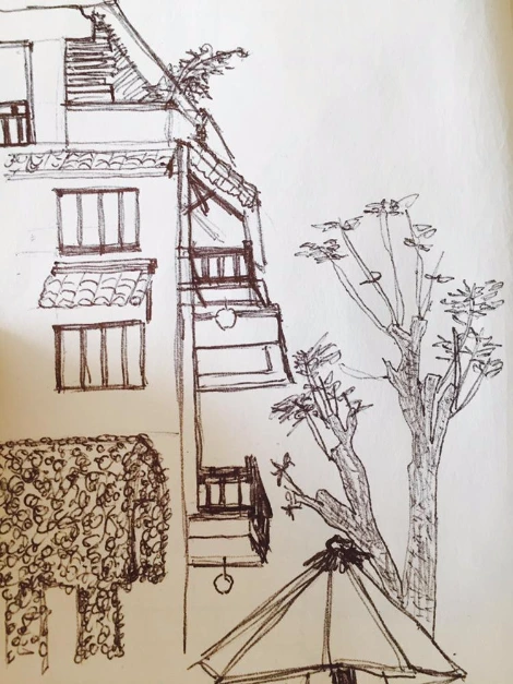 어쩔 수 없다 싶었다. 그래도 일상과 다른 사건(?)이 있기 마련이니. 그걸로 만족하지 싶었다. 그러다 여행에서 그리기 시작했다. 사진도 찍지 않던 평범한 숙소 전경이 그려보면 새롭다. 나만의 장소가 된다. 그릴 때 볕도 바람도 기억난다.