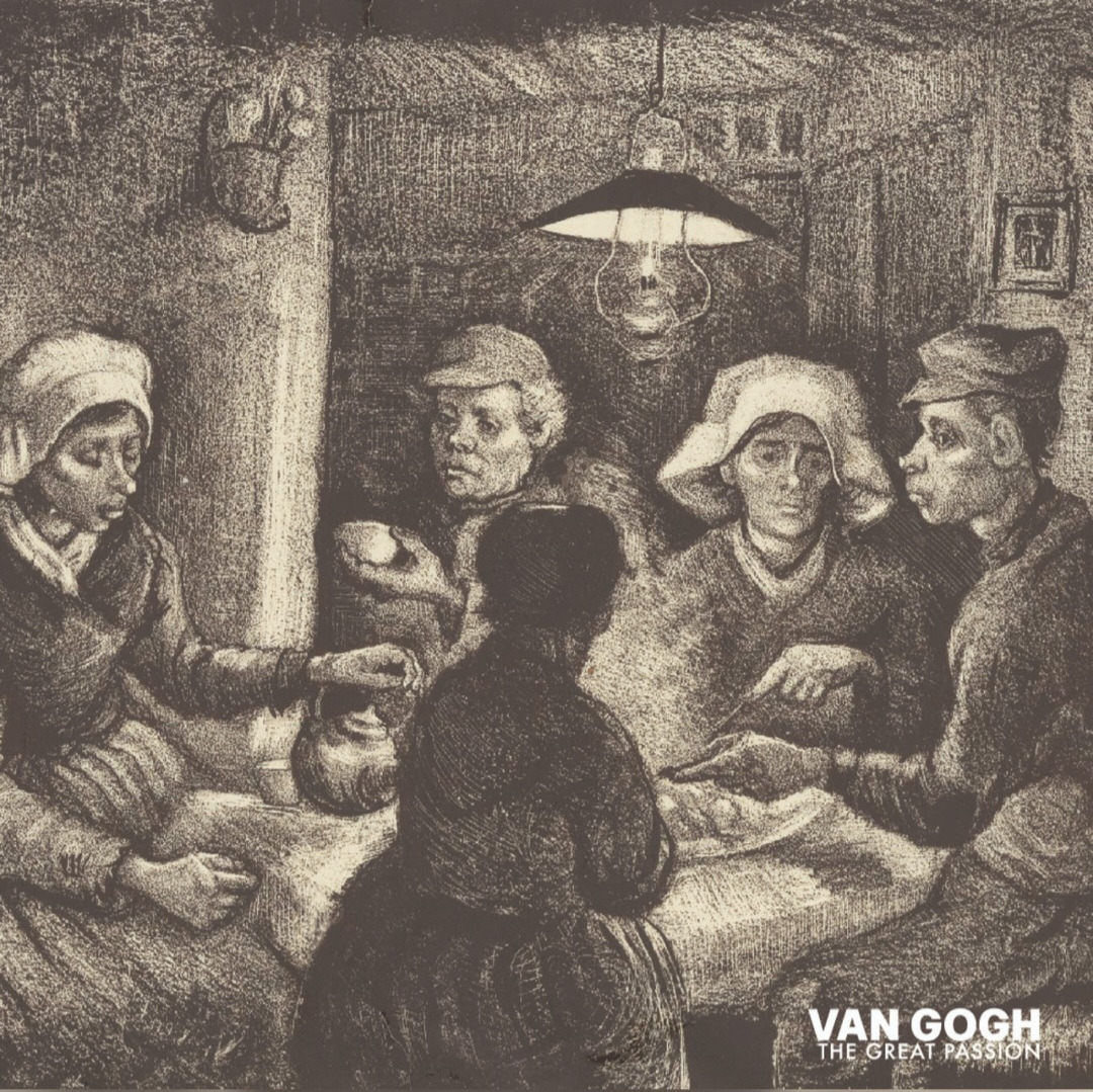 '감자 먹는 사람들'은 거칠고 투박한 얼굴과 잘 드러난 뼈 마디, 무표정의 얼굴에서 고단한 하층민의 생활이 그대로 투영되어 있었다. 낮은 천장에 대롱대롱 매달려 있는 전등의 빛을 자세히 관찰해 보니 빛의 방향을 사선으로 처리하여 진짜 퍼지는 듯한 느낌이 들게 하였고, 그 전구 바로 밑에 있는 남자와 여자의 얼굴의 하이라이트도 정확하게 잡아내어 입체감을 만들었다. 흑백으로만 저런 모든 느낌을 표현할 수 있다는 건 참 놀라운 재능이다. 드로잉초보인 나는 오직 감탄만 남발할 뿐이었다.