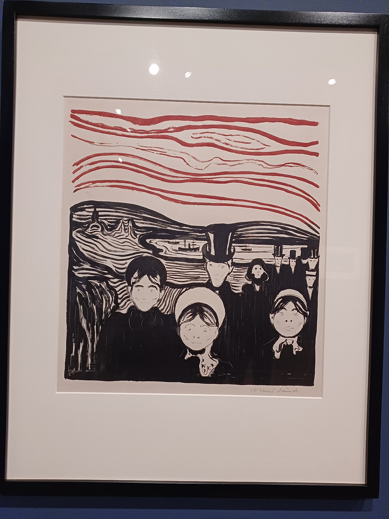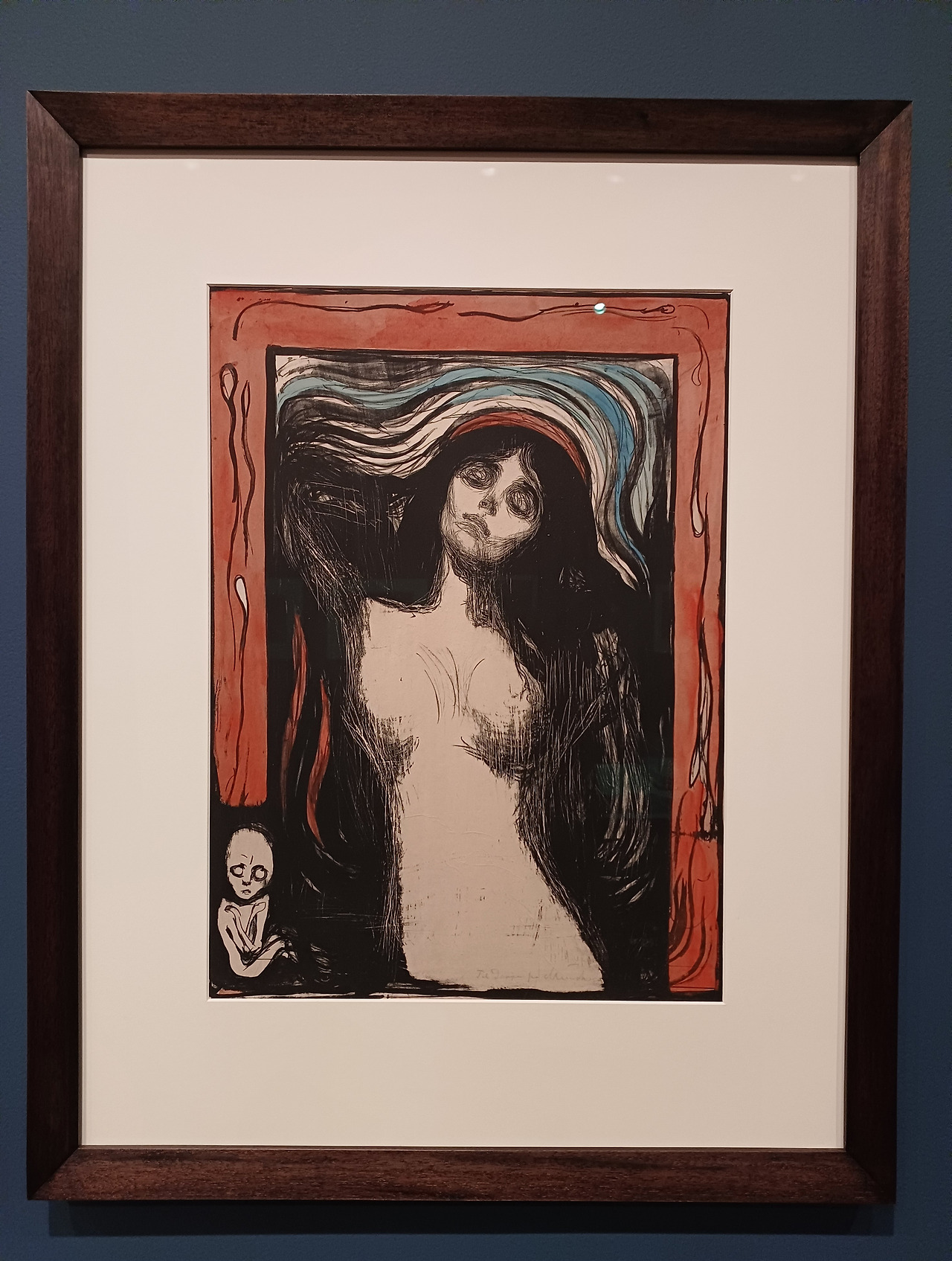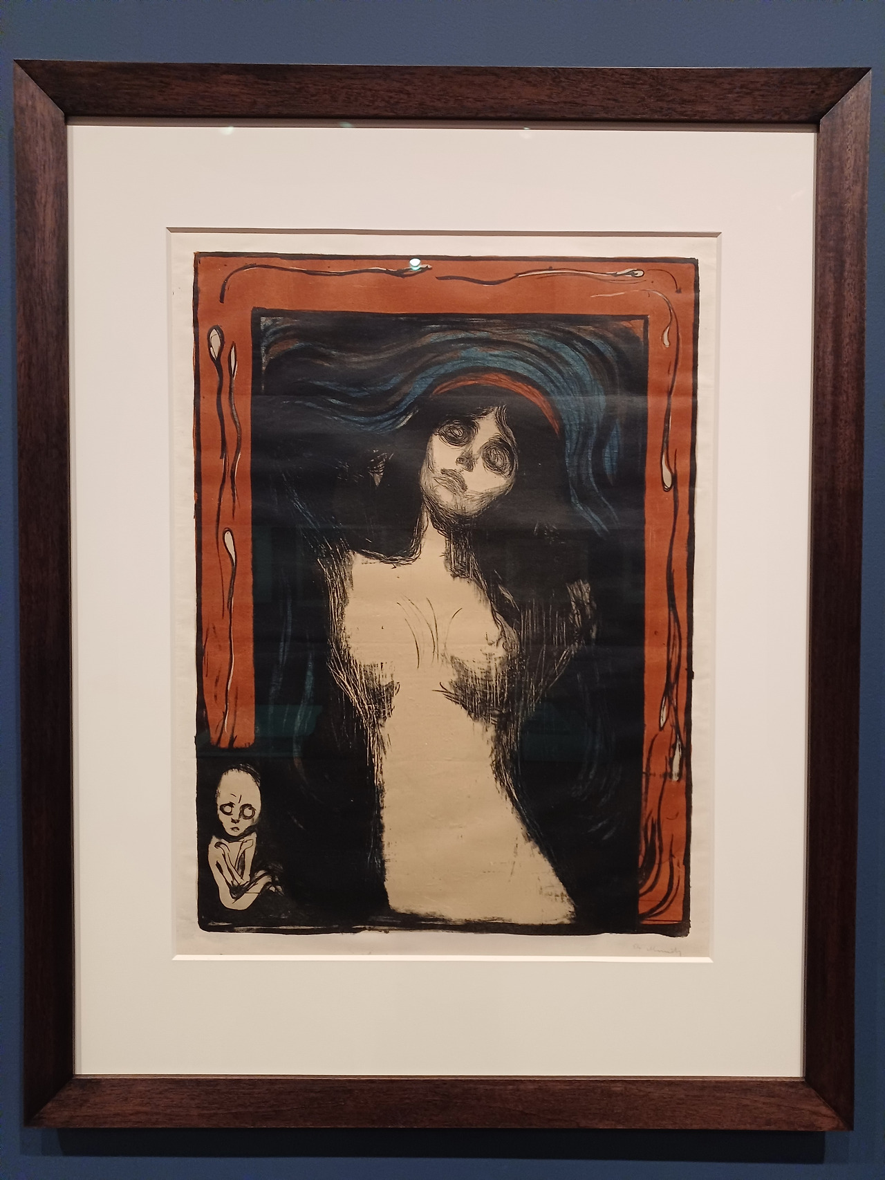 그런 백지의 상태에서 이번 뭉크전은 내게 많은 것을 알려주었다. 노르웨이 출신의 화가이자 판화가인 에드워드 뭉크는 회화와 판화에서 혁신적인 실험으로 유명했다. 동일한 소재라도 다른 색감과 좌우 변형등 다양한 실험으로 자기 복제를 통한 자신만의 독특한 실험적 탐구로 많은 작품을 양산해 냈다. 더구나 국제적인 판화 스튜디오 작가들과 네트워크를 통하여 협업하는 등 더 큰 사업으로 확장하여 생전에도 두 지역의 땅을 모두 살만큼 거부인 사업가였다.
