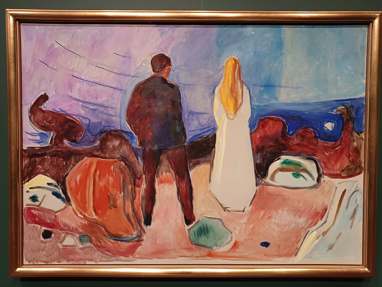 어릴 때 어머니와 누나와 여동생의 죽음과 아버지의 광기로 아주 불운한 유년을 보낸 뭉크는 평생 자살충동과 불안 그리고 강박장애로 고생했고, 사랑에 대한 불신과 계속되는 실패로 독신으로 살았다. 오죽하면 뱀파이어 같은 괴이한 그림을 그렸을까? 아마 사랑에 대한 패닉이 엄청 컸을 것 같다. 그런 그에게 편하게 마음을 나눌 수 있었던 사람은 잉거가 아닐까 싶다. 더구나 같은 예술가로서 많은 교감을 이룰 수 있었을 테니까..