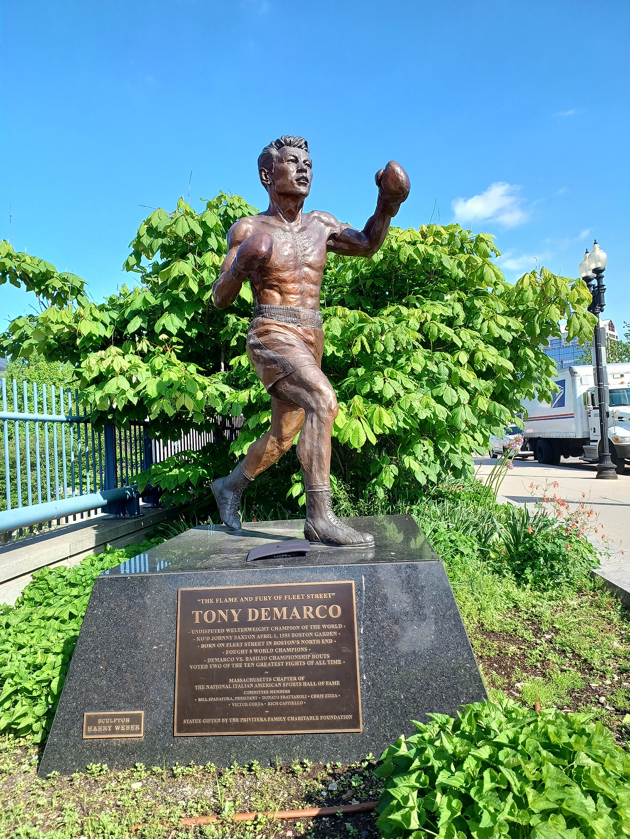 며칠 전 North End 쪽으로 걷다 보니 권투 선수동상(왼쪽)이 있었는데 딱 봐도 동양인 같아서 궁금했다. 찾아보니, 토미데마르코(Tomy Demarco)는 세계 웰터급 챔피언으로 보스턴의 북쪽 끝인 Fleet ST에서 태어났고 그의 경기는 세계 10대 명경기로 손꼽힌다고 쓰여 있었다.