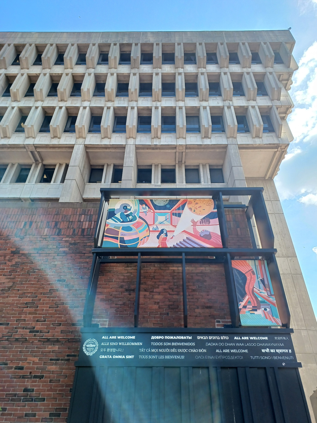 찾아보니 1968년에 완공한 건물로서 거친 콘크리트라는 프랑스어 어원을 가진 브루탈리즘(Brutalism)의 용법으로 건축했는데 논란이 많은 건물이라고 한다.