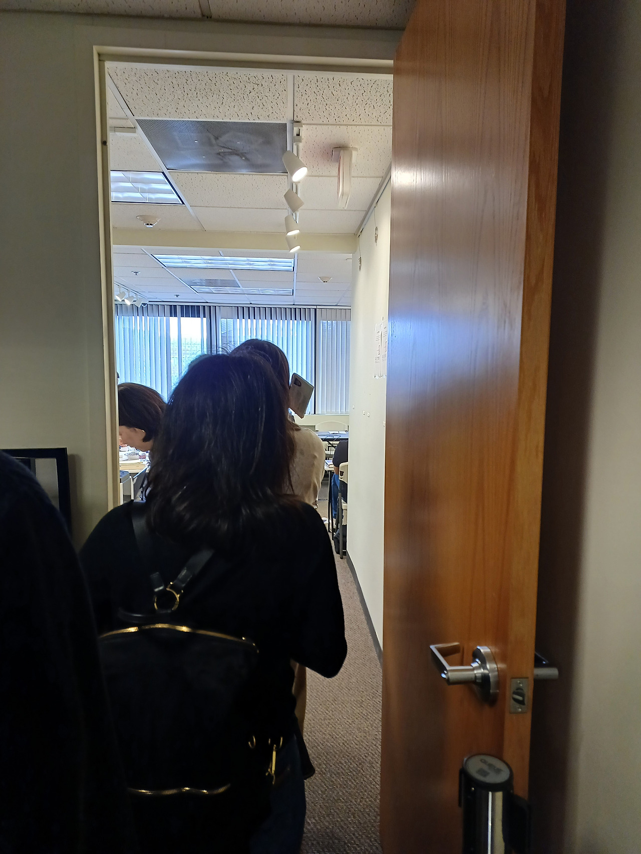 일반 사무실 느낌이었는데 환한 미소의 흑인 아가씨가 우리를 반겨주었다. 생각보다 사람은 많지 않았고 열 명 남짓이었다. 입구 벽에는 투표하는 순서와 촬영 금지에 대한 안내 그리고 후보자 사퇴에 대한 내용이 붙어있었다.