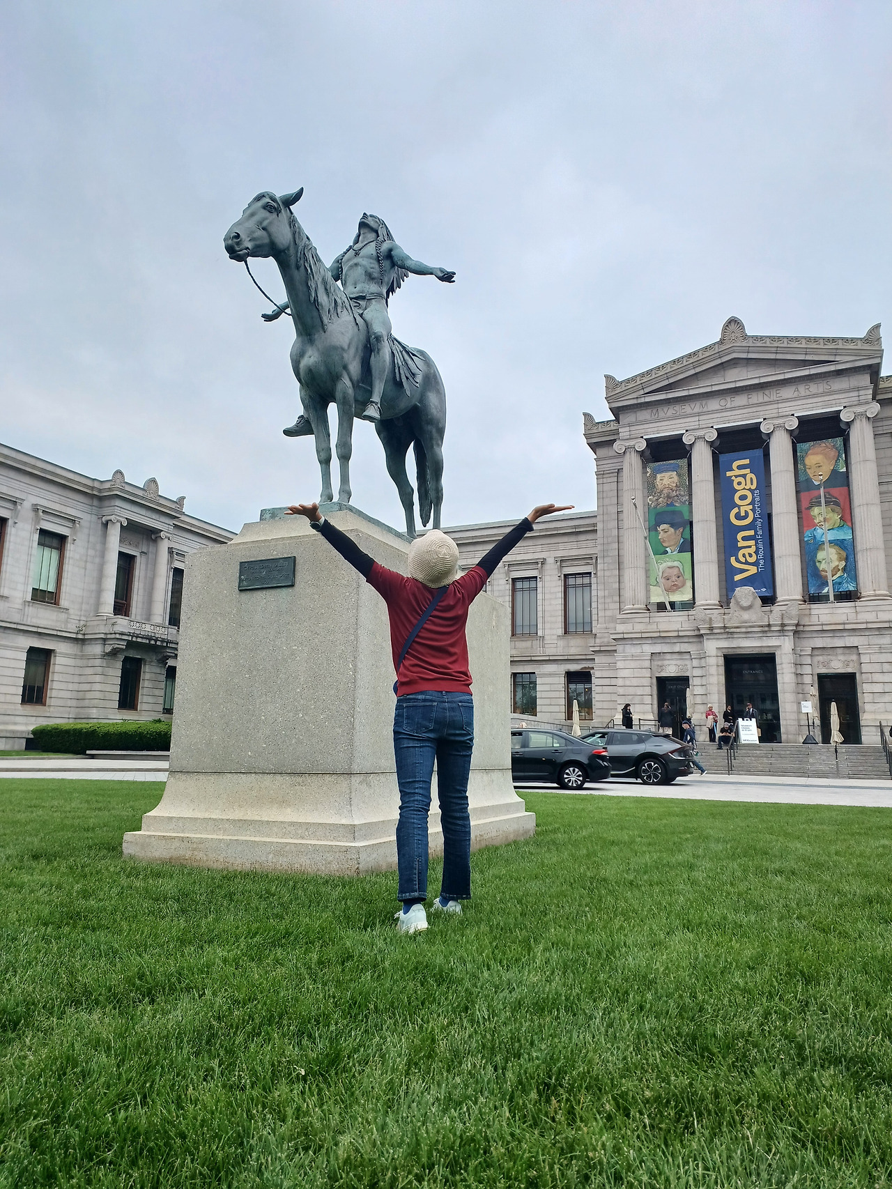 입구 앞 잔디밭에 우뚝 선, 말을 탄 인디언이 취한 당당한 포즈가 유난히 눈에 들어왔다. 그 모습이 괜스레 부럽기도 했고 지금의 내 기분 같기도 했다. 아쉬움이 완전히 가시진 않았지만 오랜 염원이던 MFA 방문을 마친 후련함이 더 크게 자리 잡았기에, 나도 모르게 그 앞에서 같은 포즈로 마무리를 짓고 싶었다.