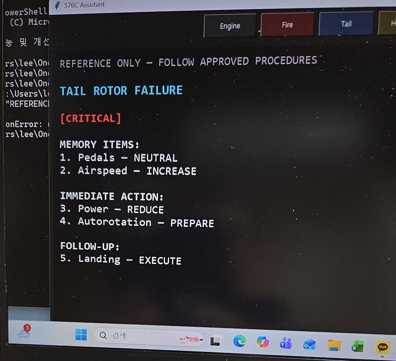 마치 임신 중인 태아를 CT 나 MRI로 보면 엄마 뱃속에서 움직임을 볼 수 있듯 나의 agent가 이제 간단한 터치만으로 주요한 비상절차를 가감 없이 교범에 근거해 보여줄 수 있게 되어 비행에서 테스트할 정도가 되었다.