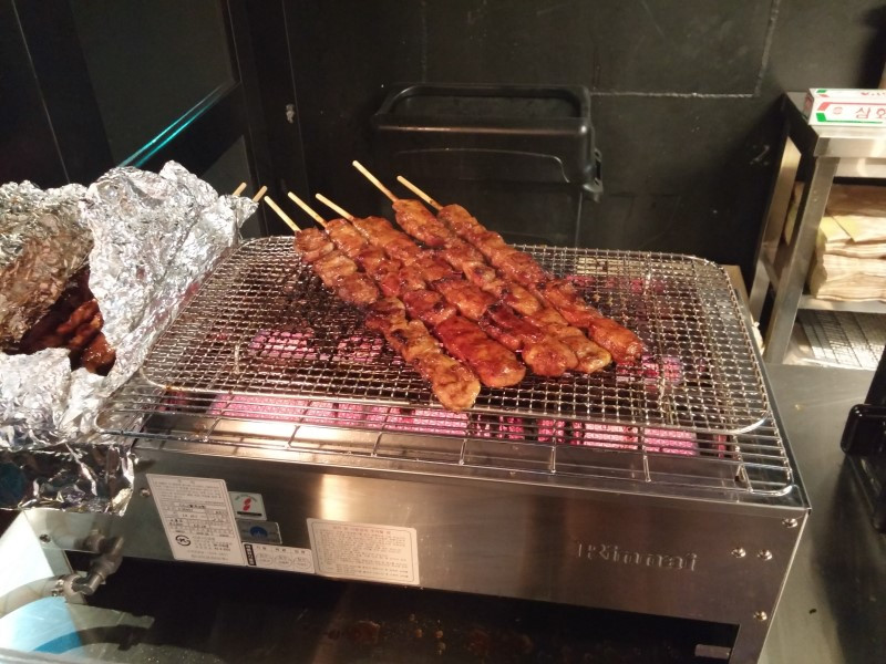 불판에 올려진 닭꼬치는 지나가면서 이목을 끕니다. 당연히 (저거 한번 먹어볼까?) 라는 생각과 함께 주문하거나 언급하는 경우가 많습니다. 연기에 냄새까지나니 확실히 더 많은 이목을 끌게됩니다.