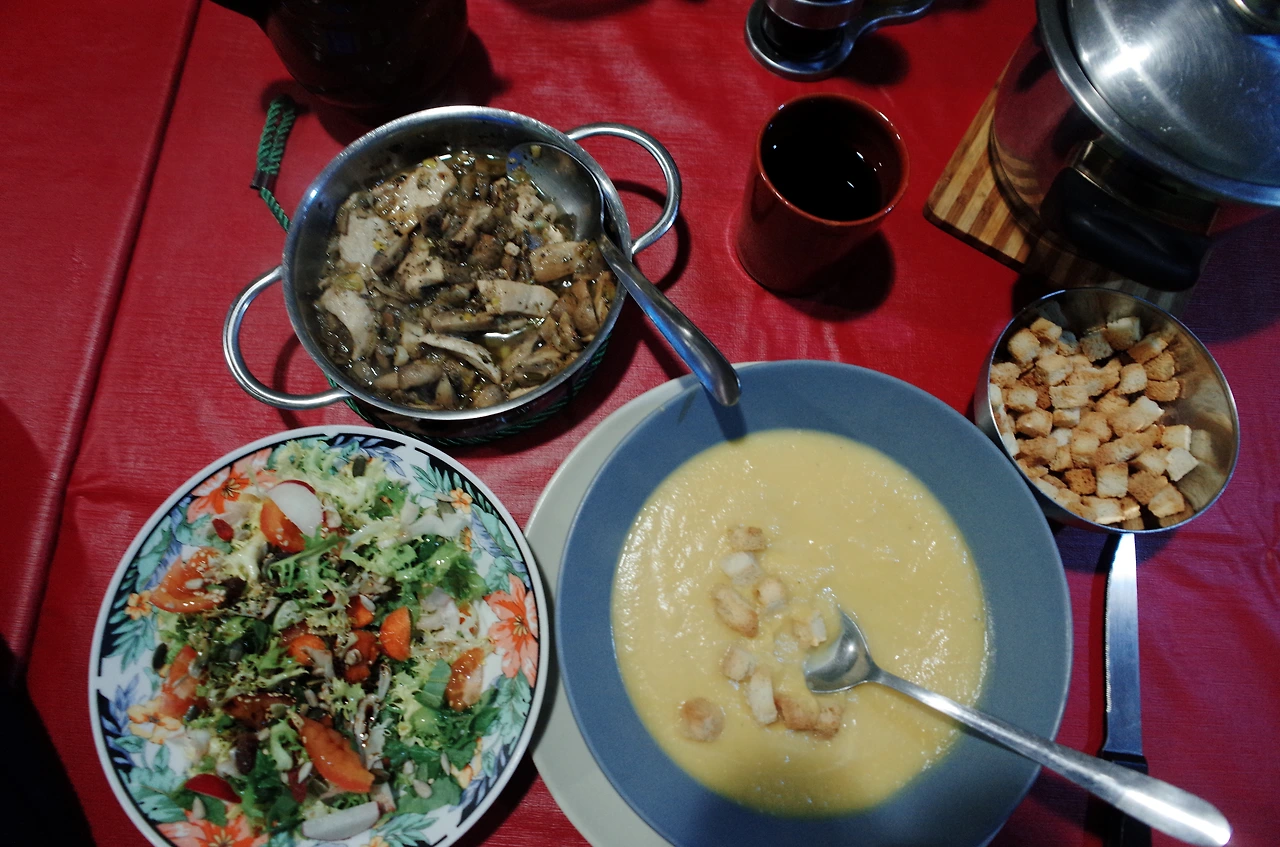 알베르게에서 제공해주는 저녁 이날따라 사람이 없어서 나 혼자 어색하게 저녁을 먹었어야 했는데