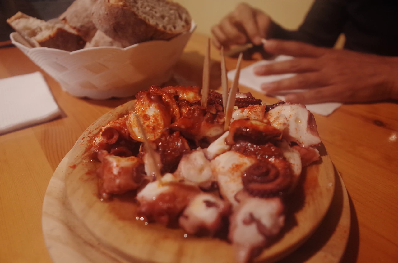 이렇게 부드러운 문어라니! 우리가 흔히 먹던 문어의 질감이 아니라, 정말 연하게 씹히는 매운 파프리카 가루를 뿌린 갈리시아 지방의 문어요리이다.