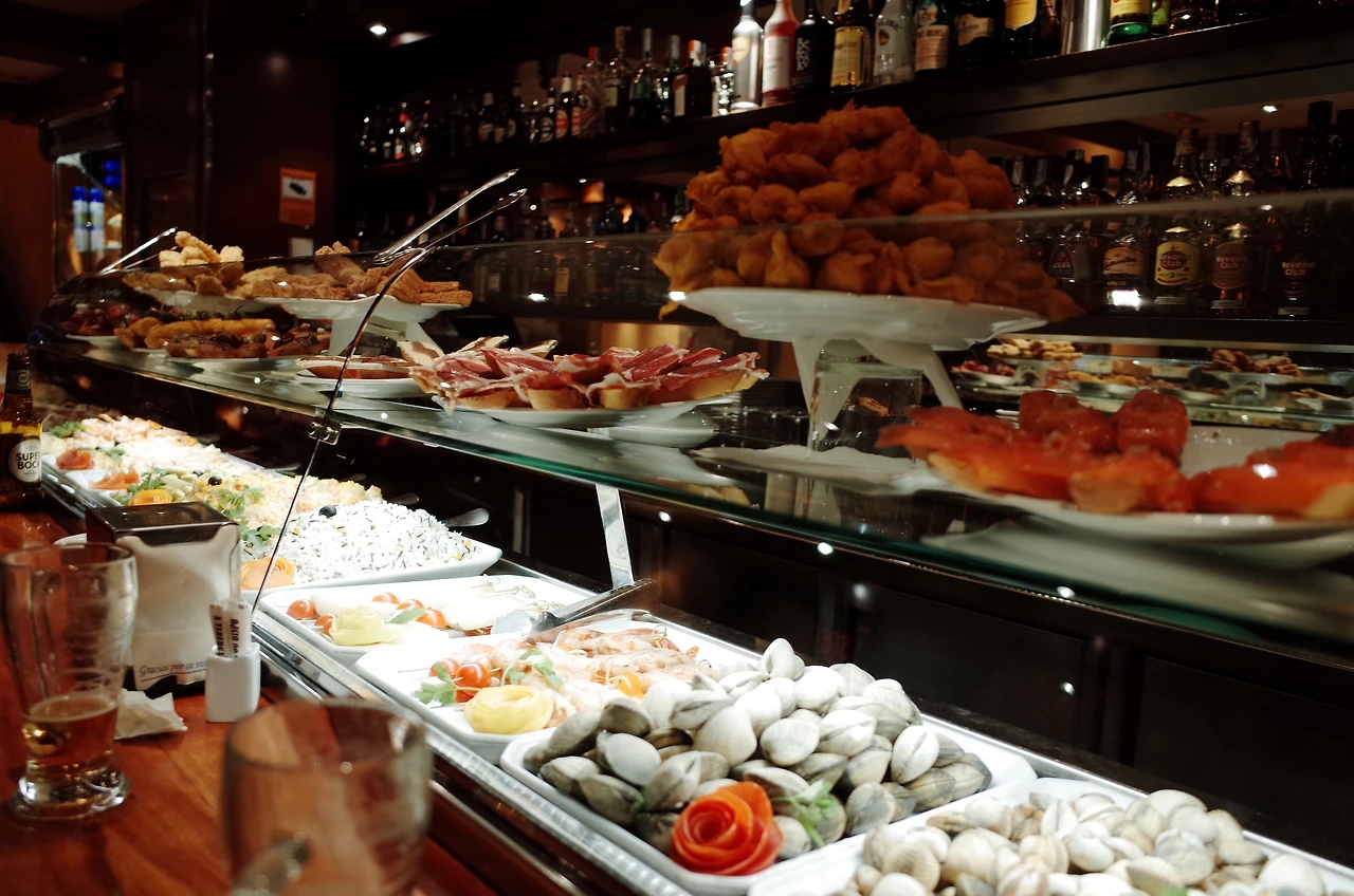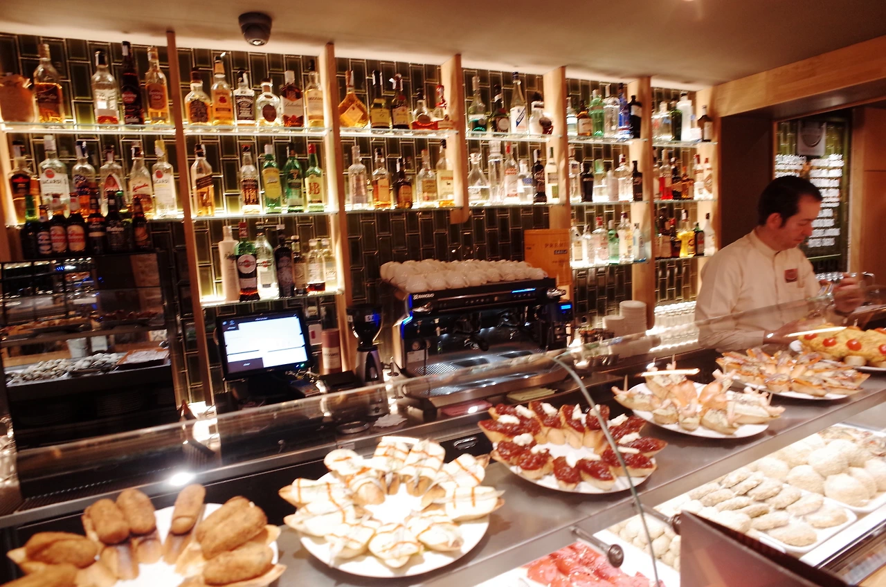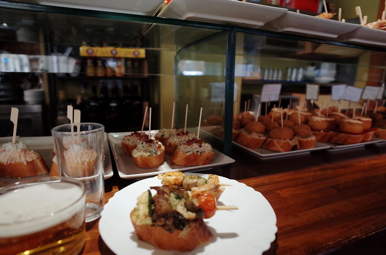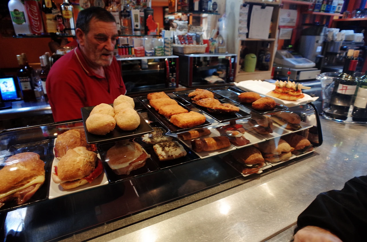 스페인의 보통 저녁식사 시간이 8시 이후라서, 그전에 타파스 바에 서서 술과 타파스, 핀초스를 먹으면서 수다를 떠는 모습을 많이 볼 수 있었다.