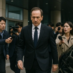 그의 앞에는 카메라와 마이크가 가득했고, 질문들이 동시에 쏟아졌다.