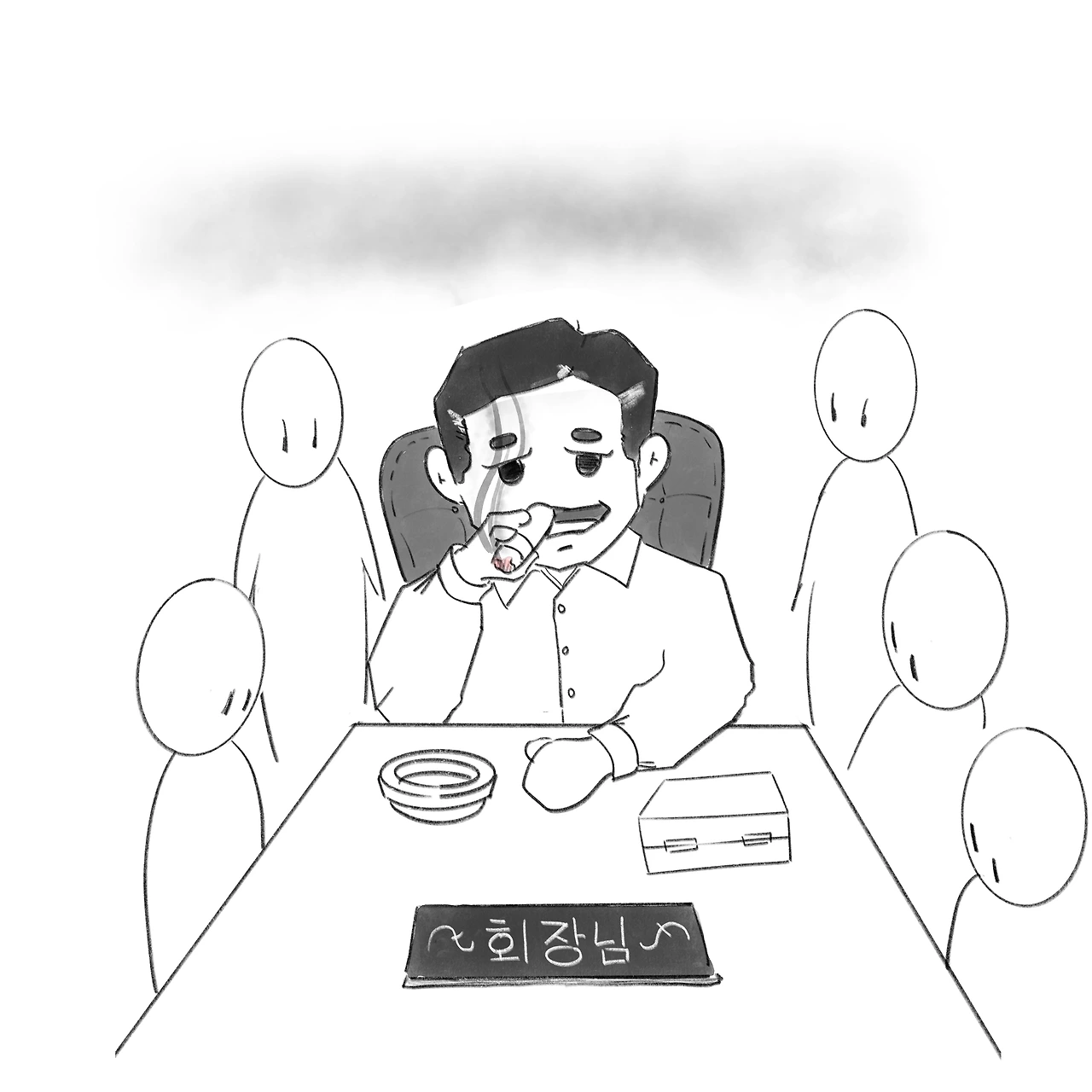 왕 회장님은 대회의실 중앙 '왕좌'에 앉았다.