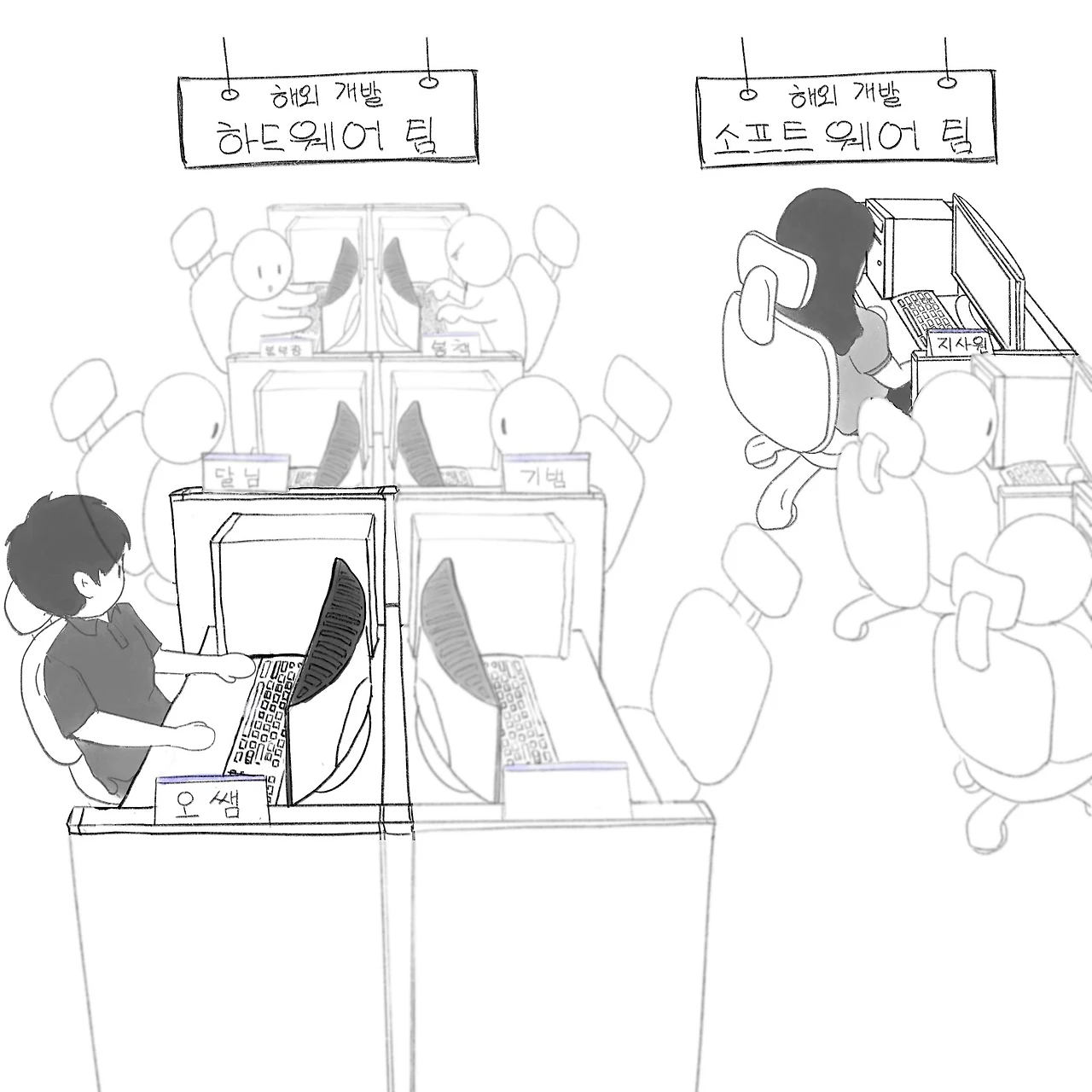 지 사원은 소프트웨어팀, 나는 하드웨어팀으로 흩어졌다.