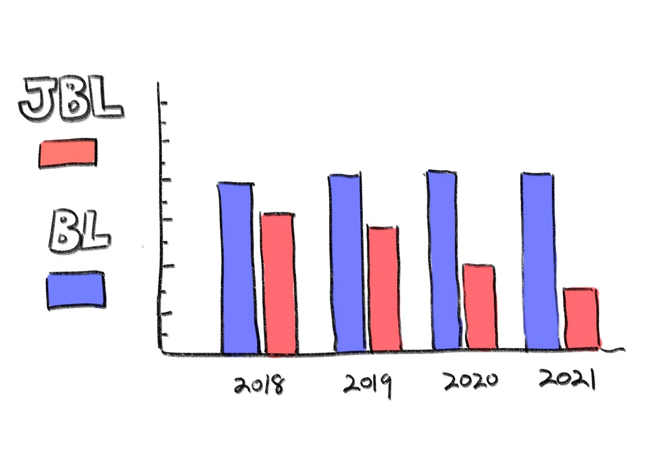 BLUE LAKE는 실적을 유지하고 있지만 JBL의 실적이 떨어지기 시작했다.